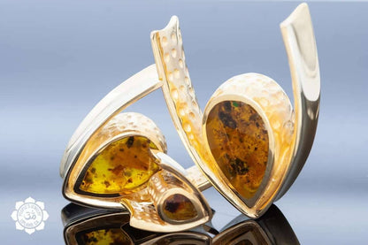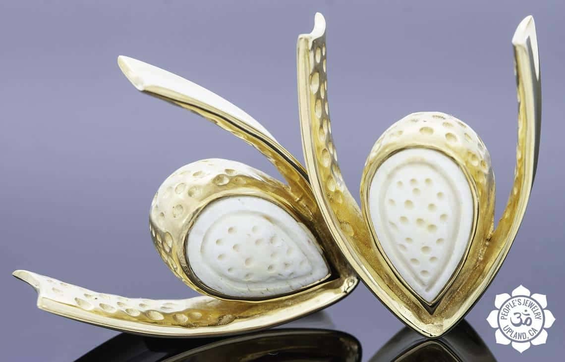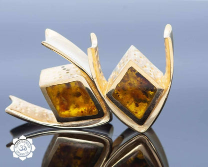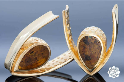 18kt Gold Plated Saddle Spreaders with Fossilized Bone or Reconstituted Amber