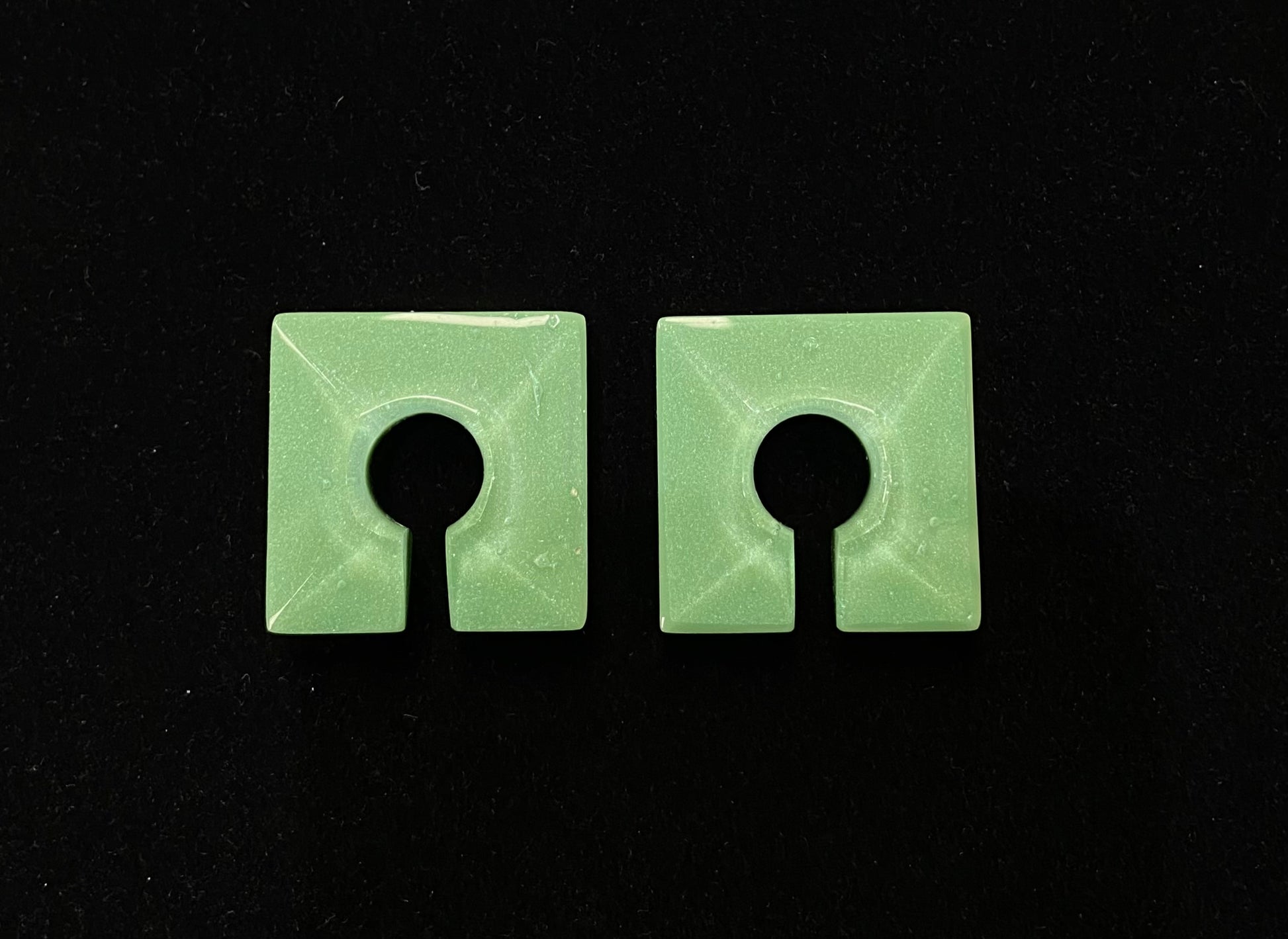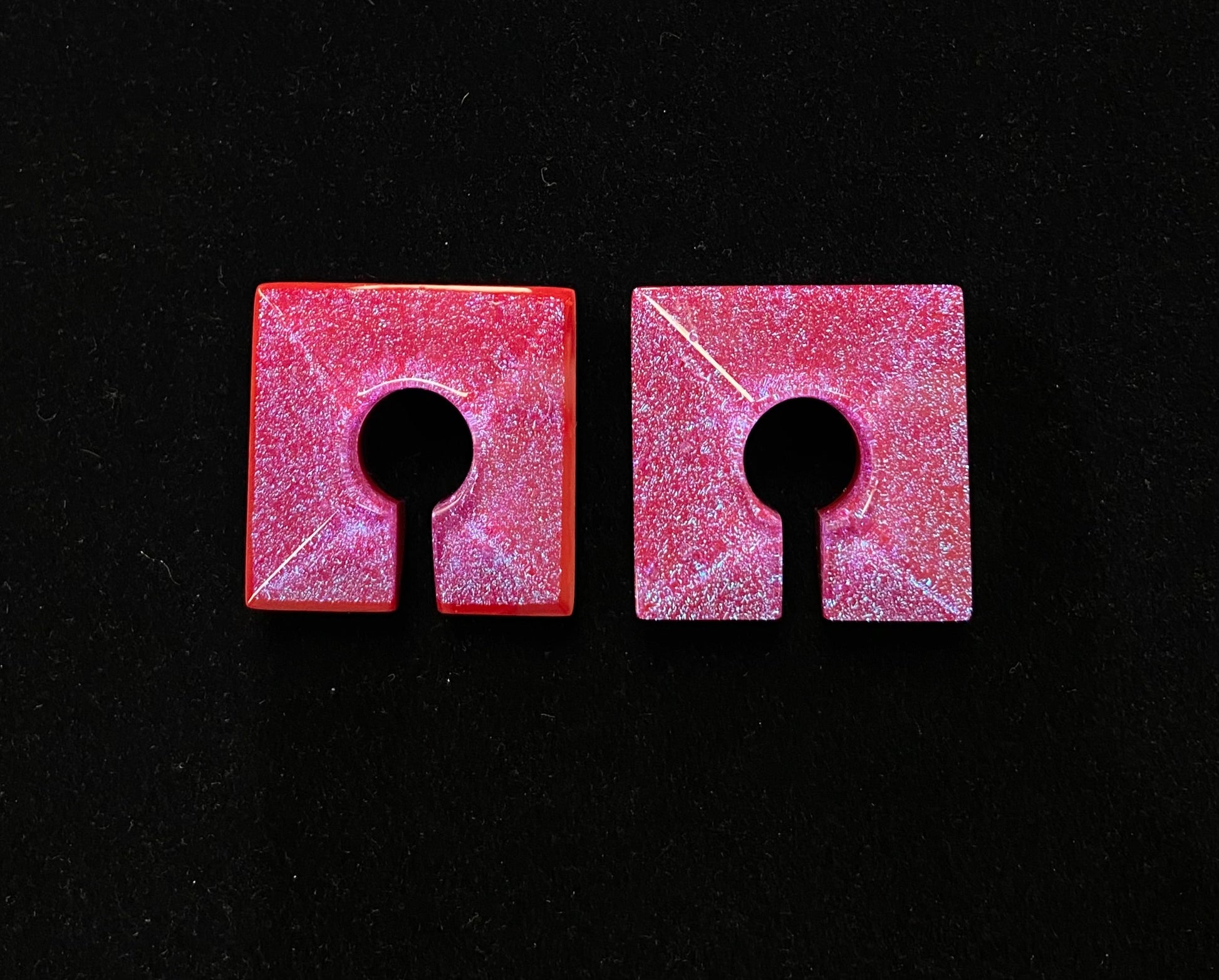 These Square Weights are very rare and discontinued. Very limited stock remaining. Available in Small (3/4″+ or 19mm+) and Large (1 1/8″+ or 29mm+). Deluxe or Fused Dichroic (Scroll down to see sample colors!) Not all colors are available