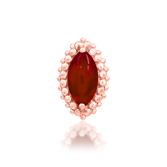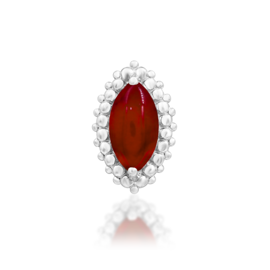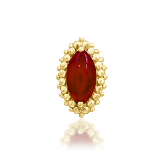 Harmonious Spirit: The deep red stone, encircled by delicate beads, symbolizes creativity and a nurturing spirit.