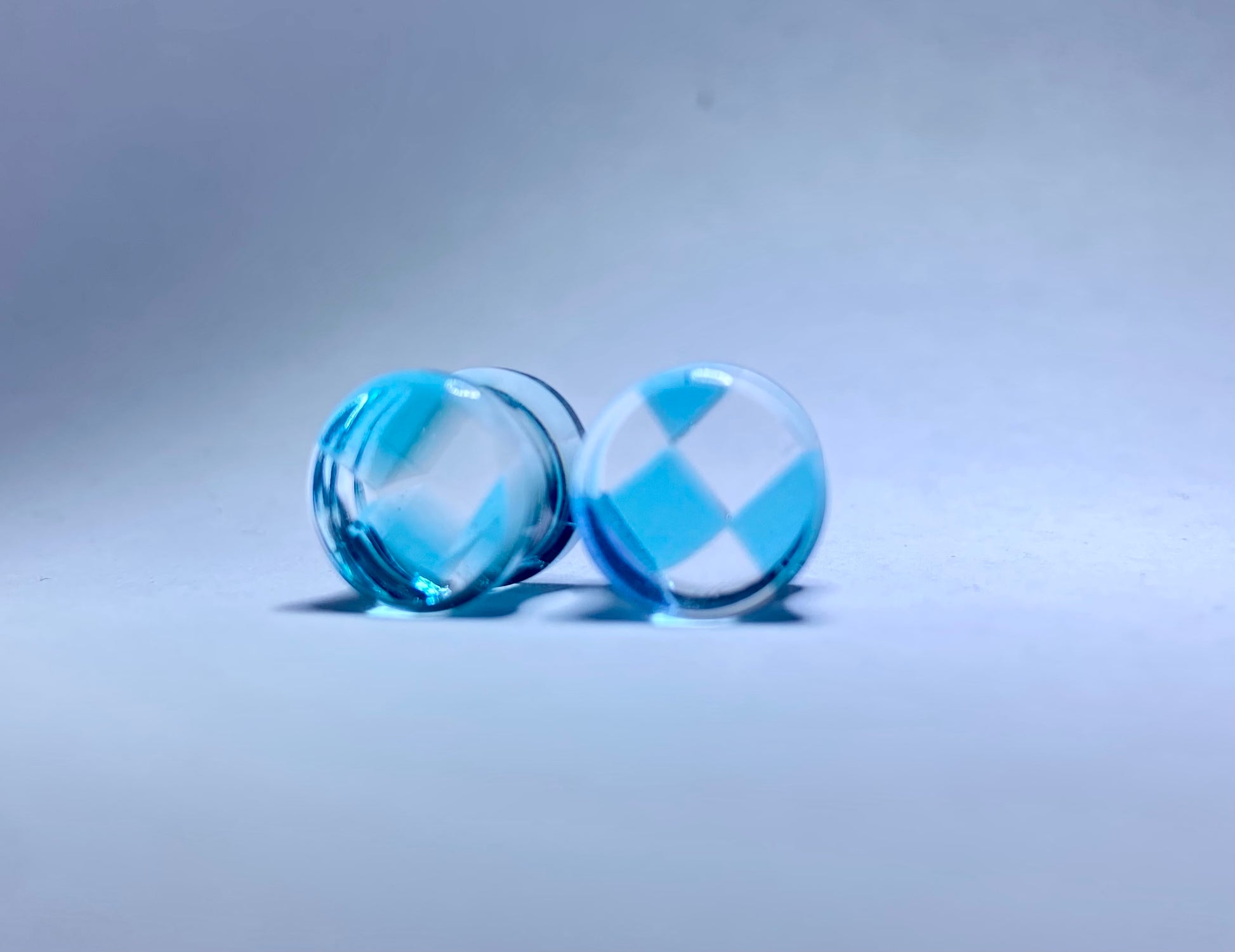 Playground Plugs from Gorilla Glass are double flared. This is a discontinued design. Each pair is unique and made of recycled glass.