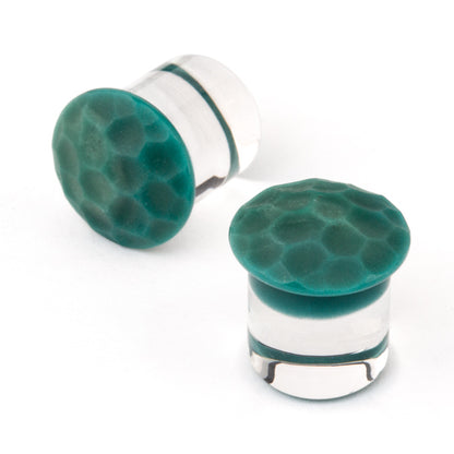 These Martele Color Front Plugs by Gorilla Glass are hand-made from Borosilicate Glass and feature a Martele Finish on the front of the plugs. Available in sizes ranging from 6g (4mm) up to 1" (25.5mm). These come in 20 different color options and options for Standard Single Flares, Long Single Flares, Grooved Single Flares, and Double Flared Options.