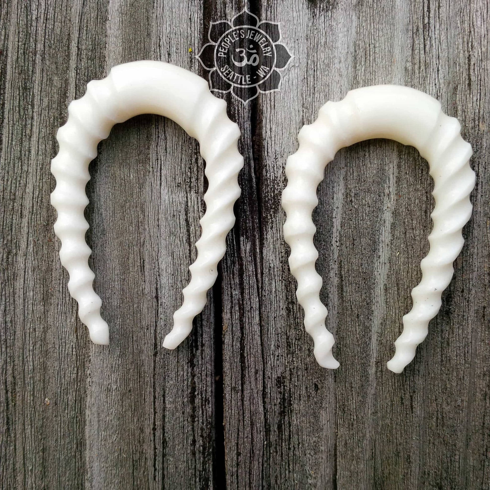 Crafted from Ethically Collected and Sourced Organic Water Buffalo Horn and Bone, These Twisted Pinchers by Peoples Jewelry are Hand-carved. Available in Black Horn or White Bone and in sizes ranging from 6g (4mm) up to 1/2" (12mm).