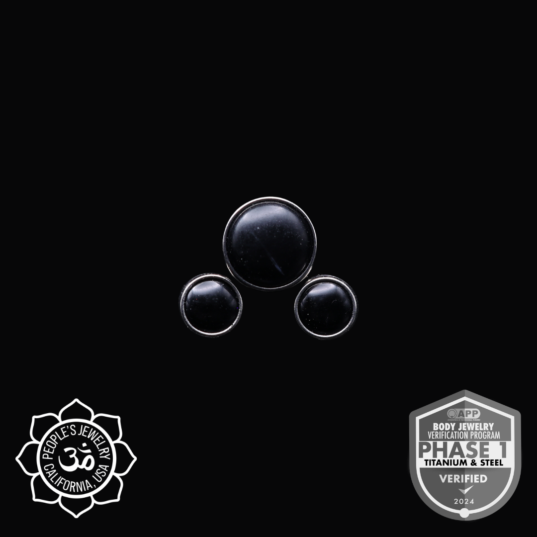 Priced Per Piece – The Müs Cluster features a 3mm threadless (top) central gem with a pair of 2mm gems on either side (bottom).