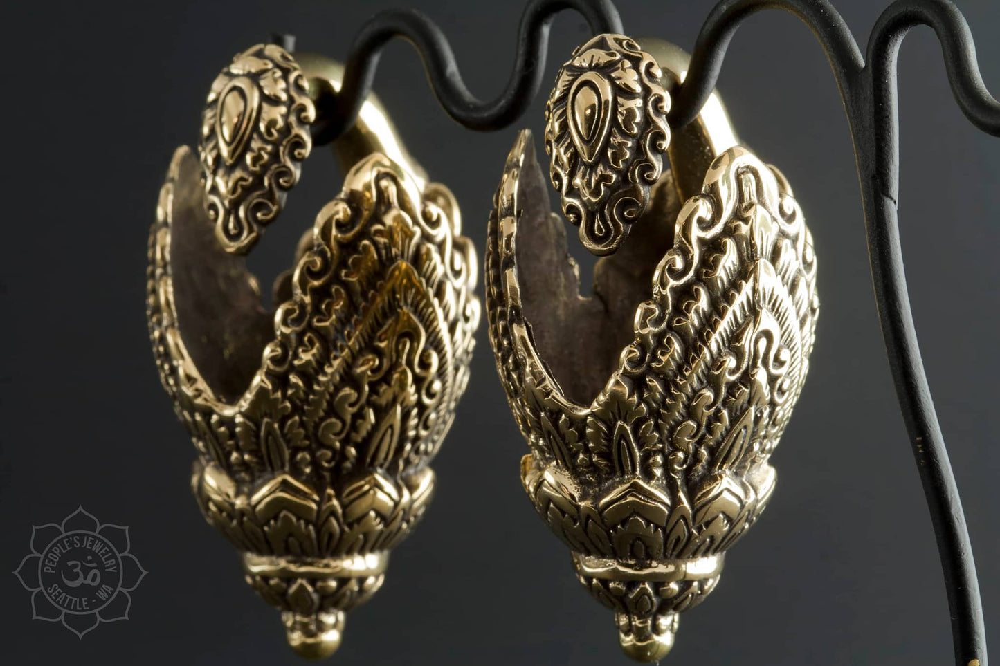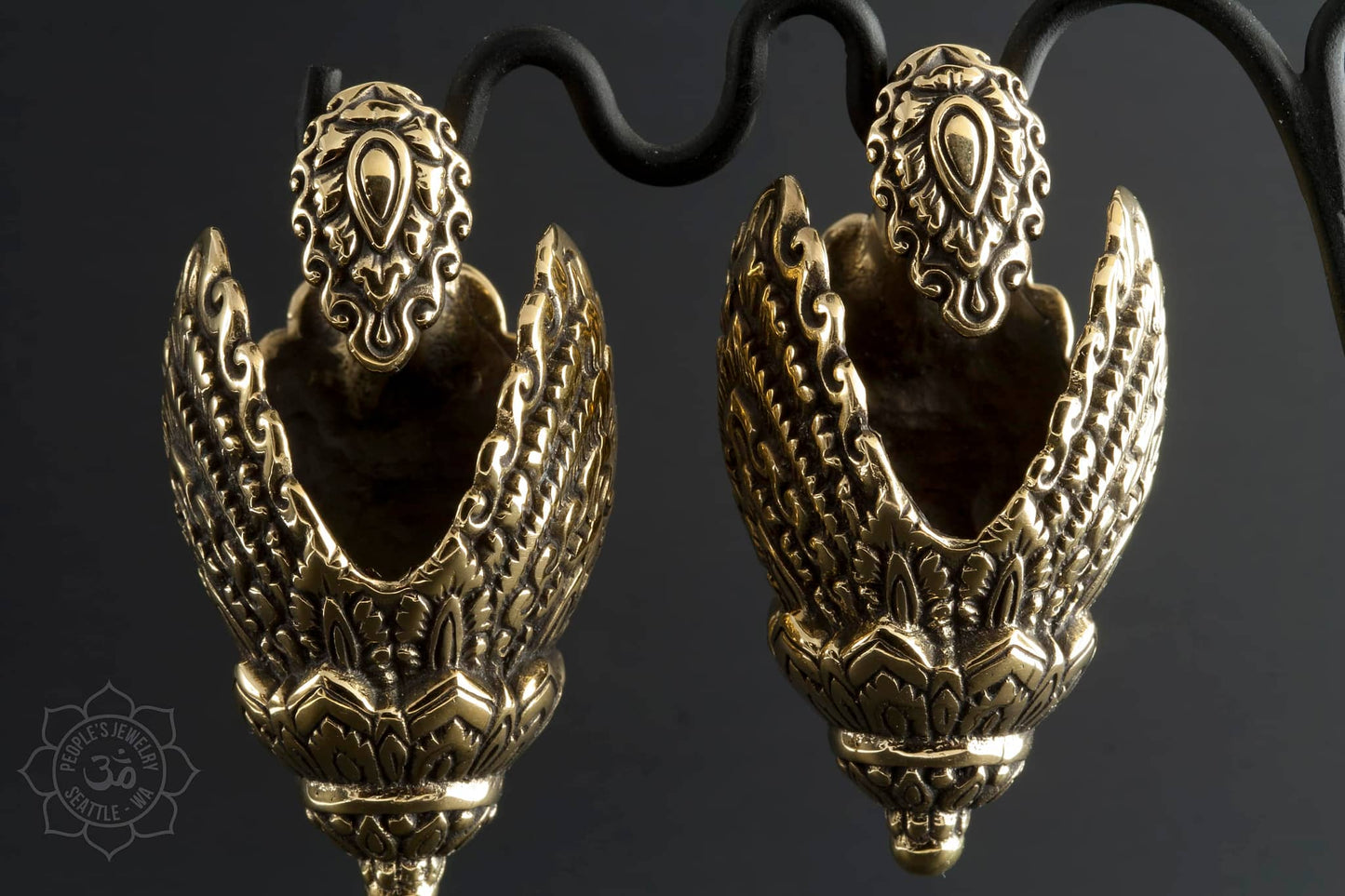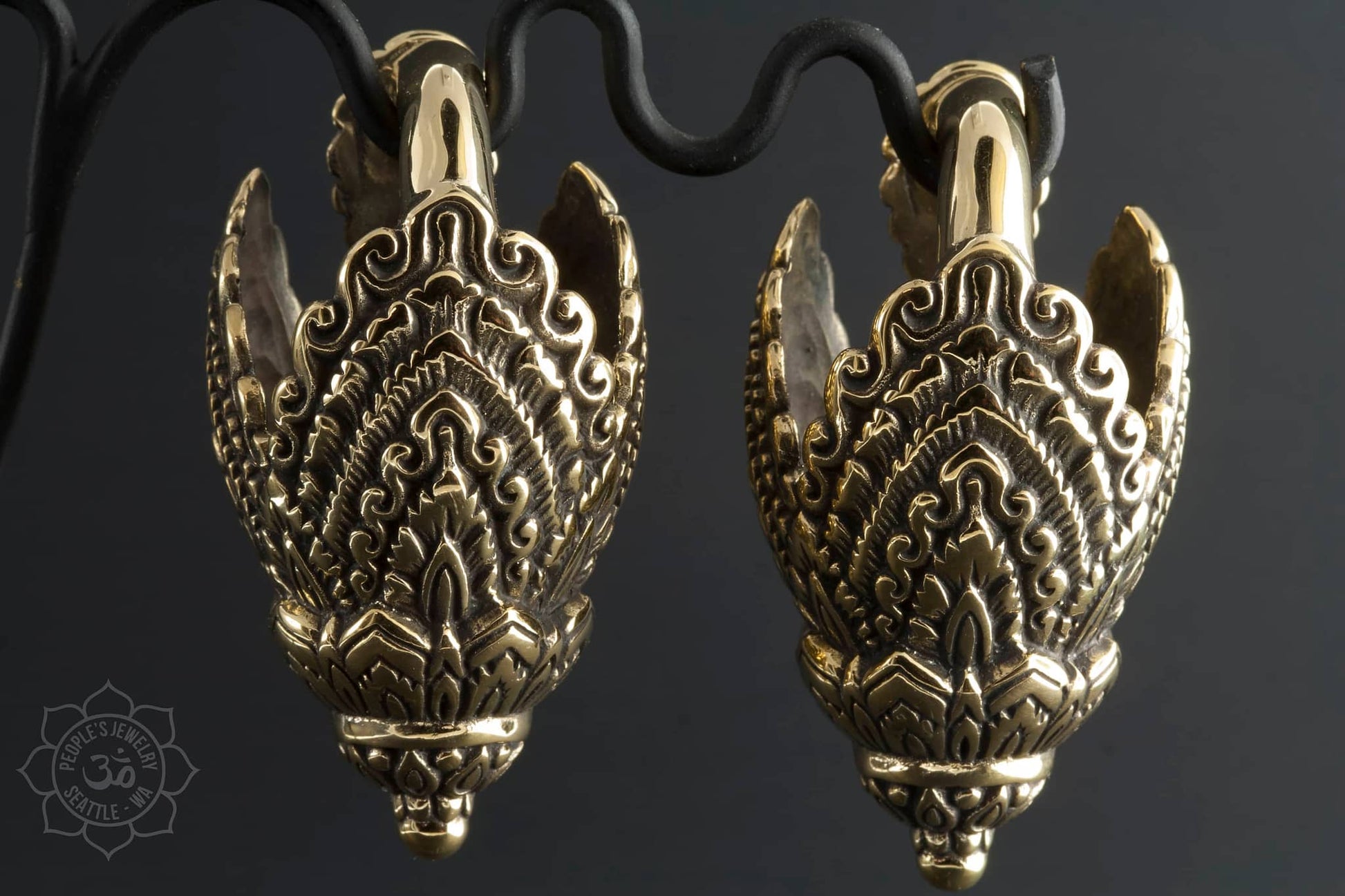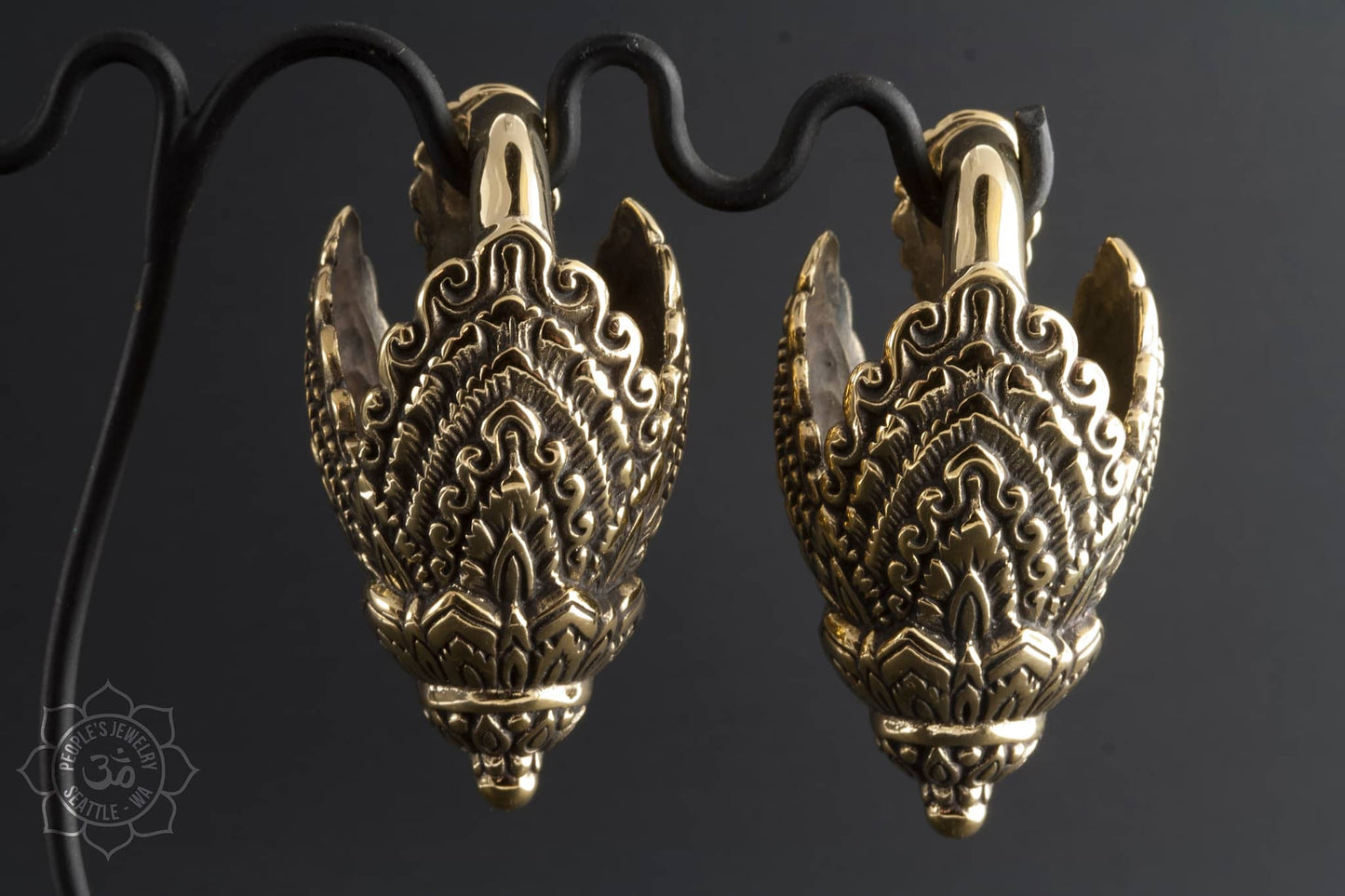 Naga Brass Ear Weights are offered in both white and yellow brass options.