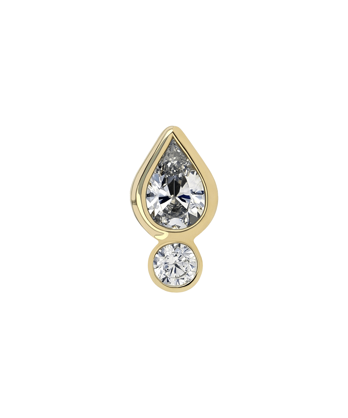The Threadless gold Icon Ends feature a stunning 2mm x 3mm pear cut gemstone and a 1.5mm round bottom accent. Available in 18K Gold (Yellow, Rose, or White).